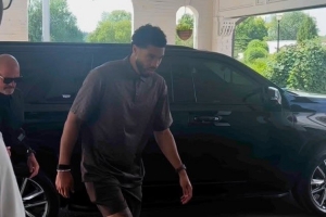 值得一提的是,目前距离跟腱断裂还不到三个月,塔图姆在参加活动行走时没有穿戴保护靴。塔图姆与参加赛事的球迷合影,为球迷物料签名,并稍加指导了一些小球迷的高尔夫挥杆动作。
